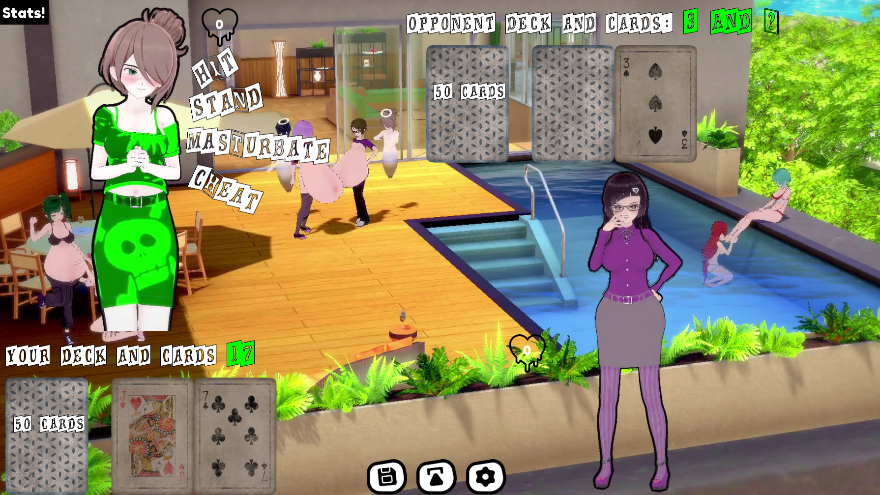 1. If a girl triggers the "trying to bust because she's horny" thing, it should probably only trigger if she's above a 15 or 16, or should automatically keep going until she busts. I've had a LOT of times where I had something like a 17, and my opponent "tried to bust" into a 20 and stood on it.